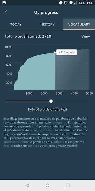 I also love being able to track everything and seeing how much progress I have made over time. For us nerds, this information is beautiful. So in 30 or so hours, I have learned 2710 words and counting. I am eagerly awaiting the completion of the Spanish course. Currently, it has 3875* words instead of 5000 and we are expecting updates to the course soon, as they announced on the Lingvist community forum.